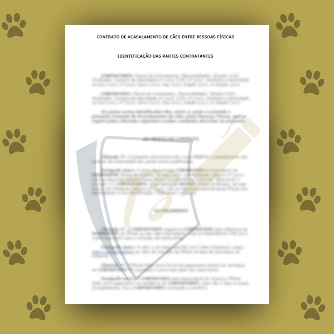 Um documento legal disponibilizado pelo site TS CONTRATOS que estabelece os termos e condições entre pessoas físicas para a reprodução planejada de cães.